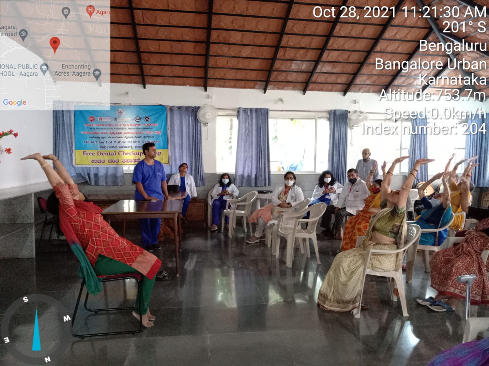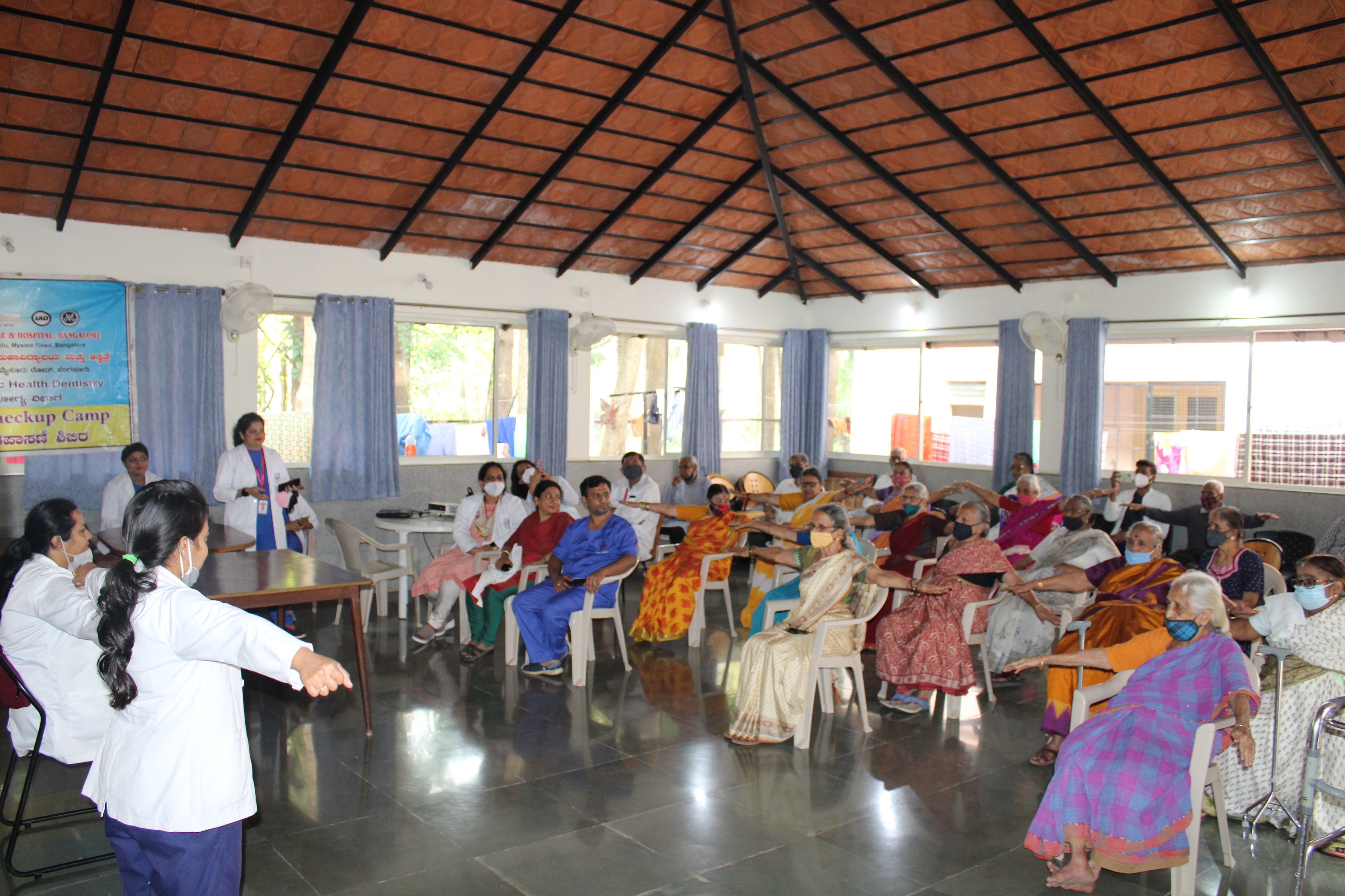 Dr.Padma K Bhat demonstrated sitting surya namaskara to the elderly which was very much appreciated by the elders.