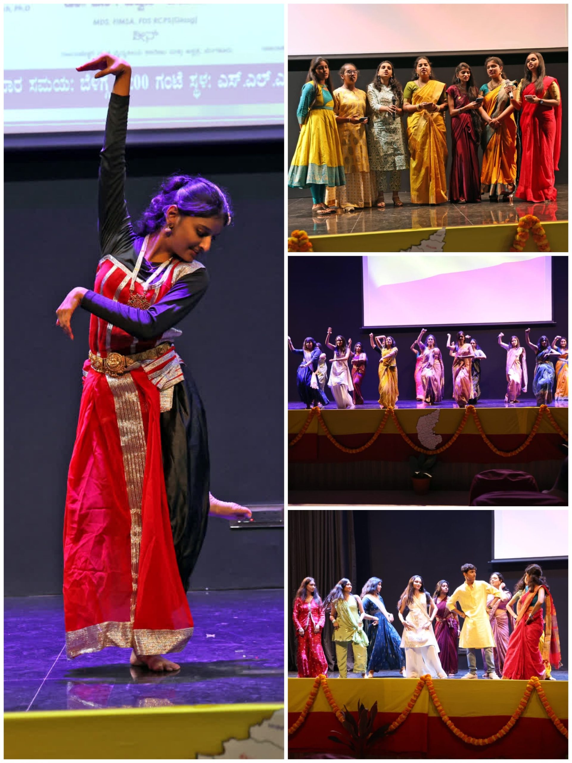 The cultural festivities were set in motion with vibrant Bharatanatyam, melodious singing, and energetic dance performances by the students, beautifully reflecting the spirit and essence of Kannada culture. The programme concluded with a light meal for all, marking a warm and memorable end to the celebration.
