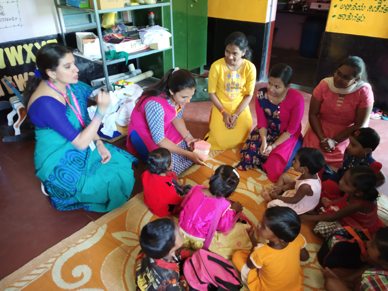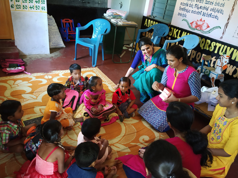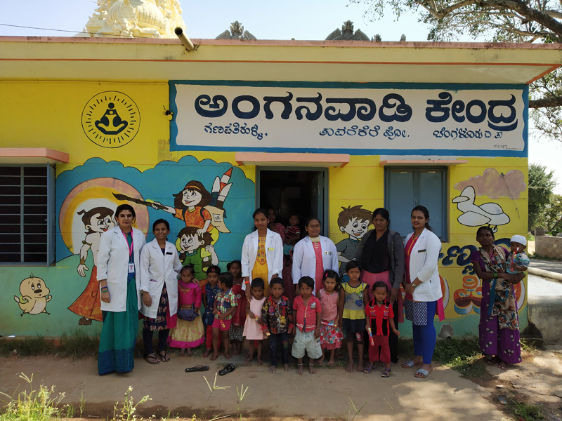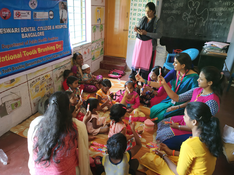 A dental screening, health education, distribution of free toothpaste and tooth brush and oral health awareness drive was held at ganapathihalli , chunchunkuppe village on 14-11-2018, as a part of National Tooth Brushing day initiative. Incidentally, 14th November being the ‘Children’s Day” the opportunity was utilized to interact with 15 anganwadi children, their care givers and the anganwadi teacher. They were educated on tooth brushing, importance of maintenance of oral hygiene. A demonstration of brushing method was given to the children, caregivers and the teachers, free toothpaste and tooth brush were distributed. A team of dentists from the department Public Health Dentistry of RRDCH also conducted a screening program for oral diseases in the local population, importance of tooth brushing and oral hygiene was stressed upon. A total of 46 residents, children and adults were screened and appropriate referrals were made to the chunchunkuppe rural centre and to RRDCH.