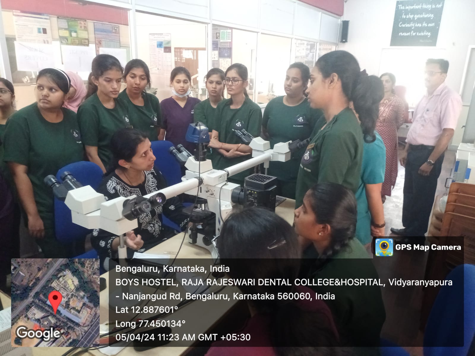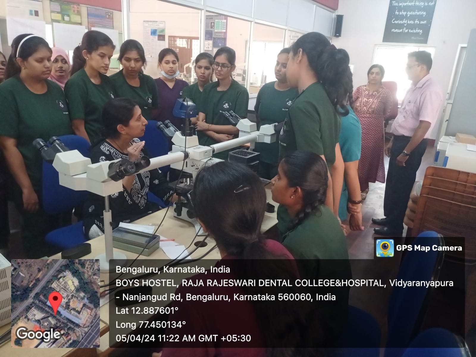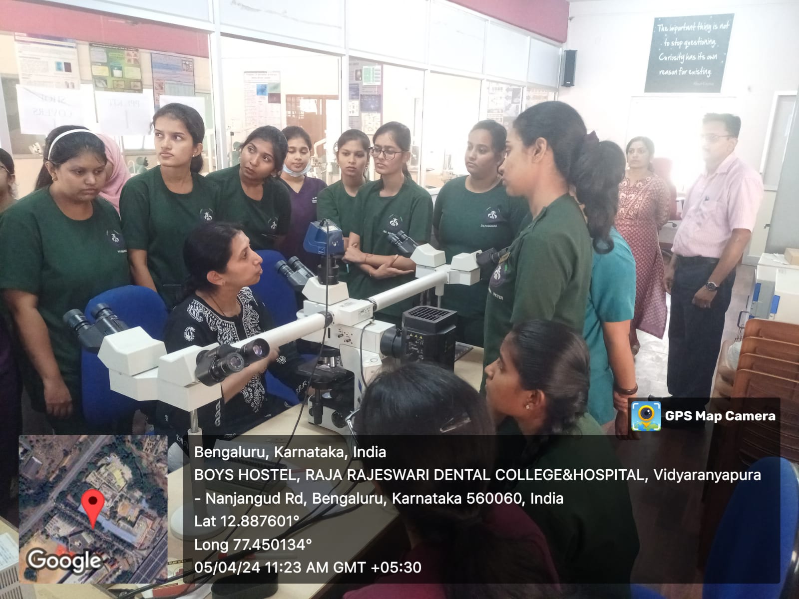 Following the lecture, students were taken to the histopathology lab, where Dr. Varsha VK and Dr. Vinay demonstrated the processes of grossing the biopsy tissue (specimen), processing, cutting, and staining the tissue.