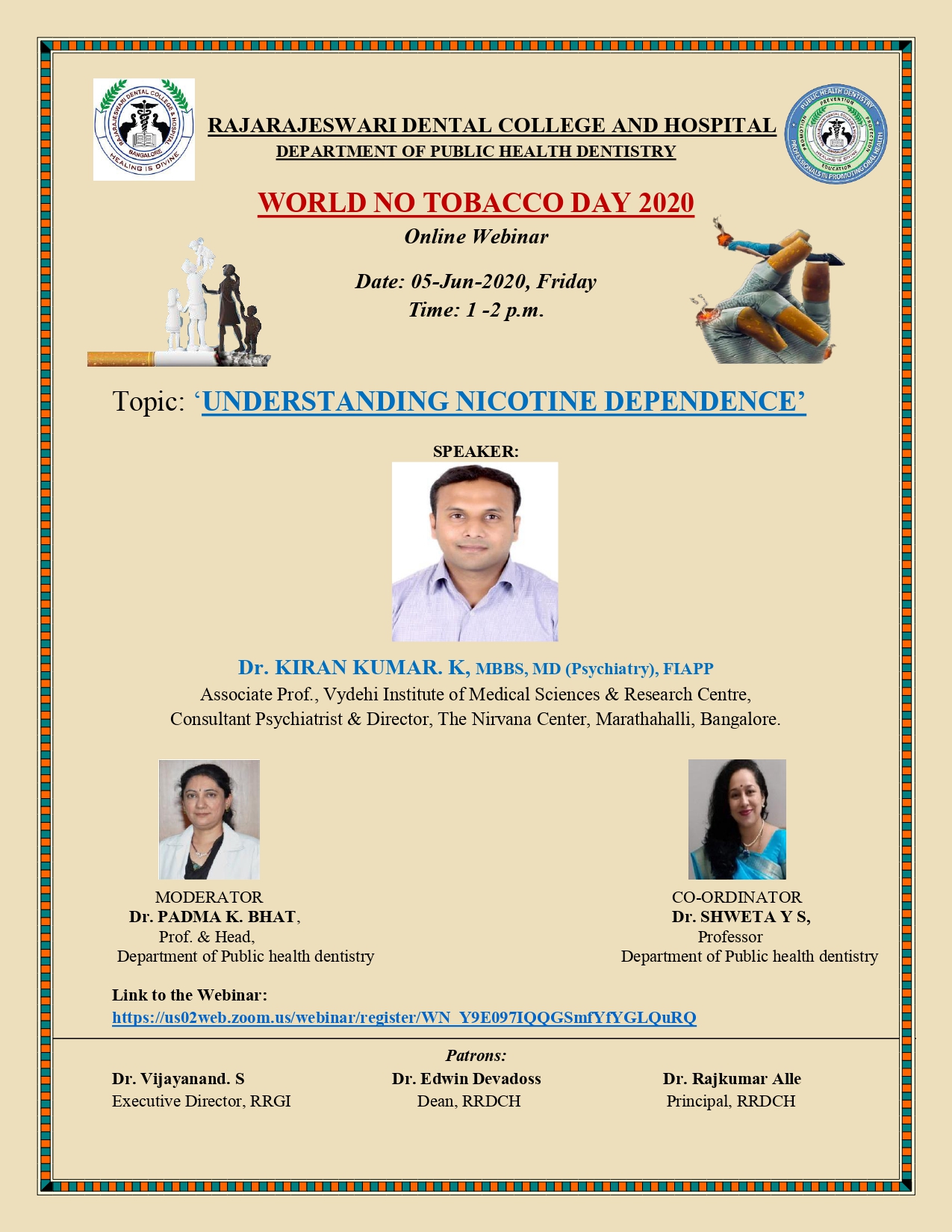 Resource Person : Dr. Kiran Kumar. K, MBBS, MD (Psychiatry), FIAPP,Associate Prof., Vydehi Institute of Medical Sciences & Research Centre,Consultant Psychiatrist & Director, The Nirvana Center, Marathahalli, Bangalore.
